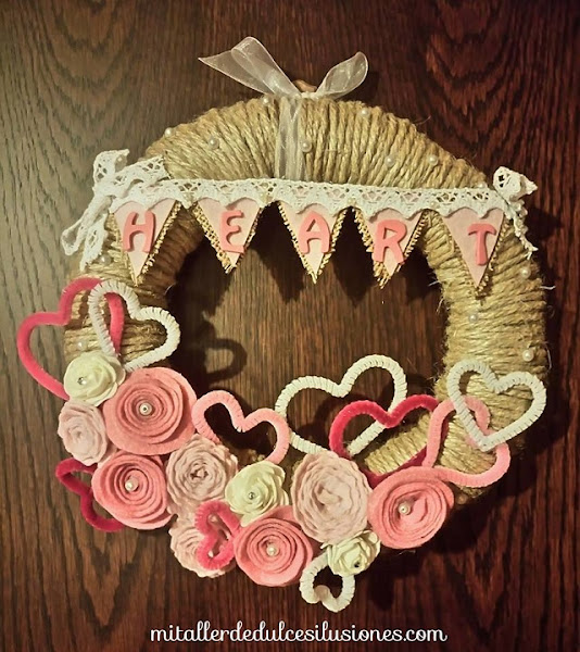 Llega una fecha que a muchos os gusta celebrar como es San Valentin,yo soy partidiaria de que debe celebrarse cada día,pero se que para muchos es un día algo más especial y a mi me parece una buena ocasión para decorar,y para eso y para hacer una bonita manualidad siempre es perfecto.Hoy os quiero enseñar hacer otra de mis coronas para las puertas,con esta nueva temática y que siempre nos puede servir para lo que queramos,veréis que fácil.