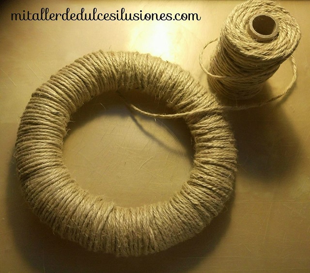 2. Lo primero es hacer la base de la corona,que como siempre os digo podéis comprarla o hacerla como os he enseñado en otras ocasiones, AQUI os dejo el enlace donde aprenderéis hacerla,sólo necesitáis goma eva y algo para rellenar como guata o papel .3. Una vez hecha la base de la corona taparla completamente dando las vueltas que queráis con cuerda,cuantas más vueltas más gordita ,con más forma y más resistente.