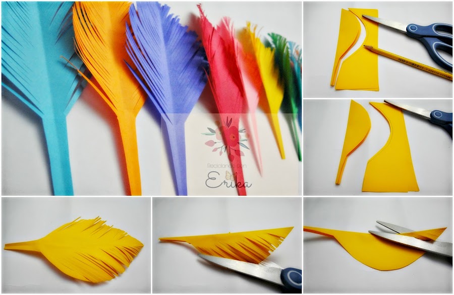 Hacerlas es muy fácil , sólo necesitas un cuadrado de papel doblado , dibujar la forma de la pluma, recortarla y hacer cortes muy finos en forma inclinada , se me ocurren tantas proyectos con ellas , que poco a poco iré compartiendo más ideas , de momento puedes ver las participaciones de mis compañeros que están geniales en el Reto Papelisimo : Plumas , reto en el cuál participo !