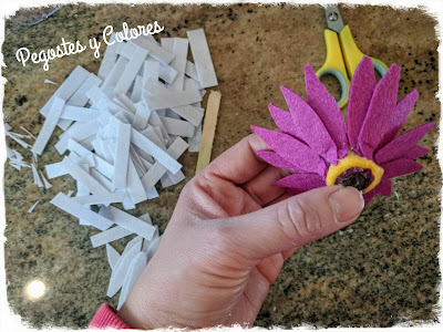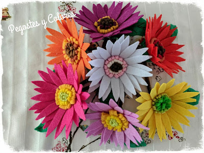 La verdad quede muy complacida de este fieltro, que aunque al inicio me decepciono, ahora me alegro de tenerlo para las flores, porque los petalos quedaron muy firmes.