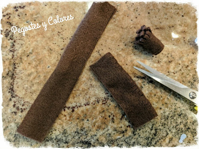 2.- Ponemos silicon por lo largo de una de las orillas del rectángulos largos para los centros y doblamos para que se peguen las orillas.