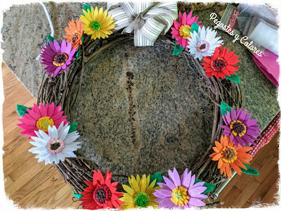 Ya antes les habia presentado una corona rustica que adorne con gerberas, pero las que hice, como eran para Pascua, tenian fieltros de tonos pastel.