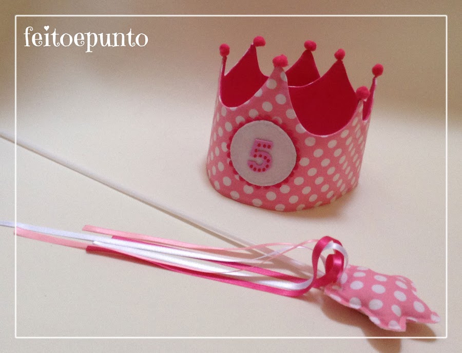 A juego le hice una varita de "hada madrina"... la verdad es que la niña con 5 años ya pasa de la varita, pero a Carolina le encanto! se pasó los días previos al cumple jugando con la varita por casa diciendo que era "Holly" (personaje de dibujos animados, para las afortunadas que no la conozcan jejeje)