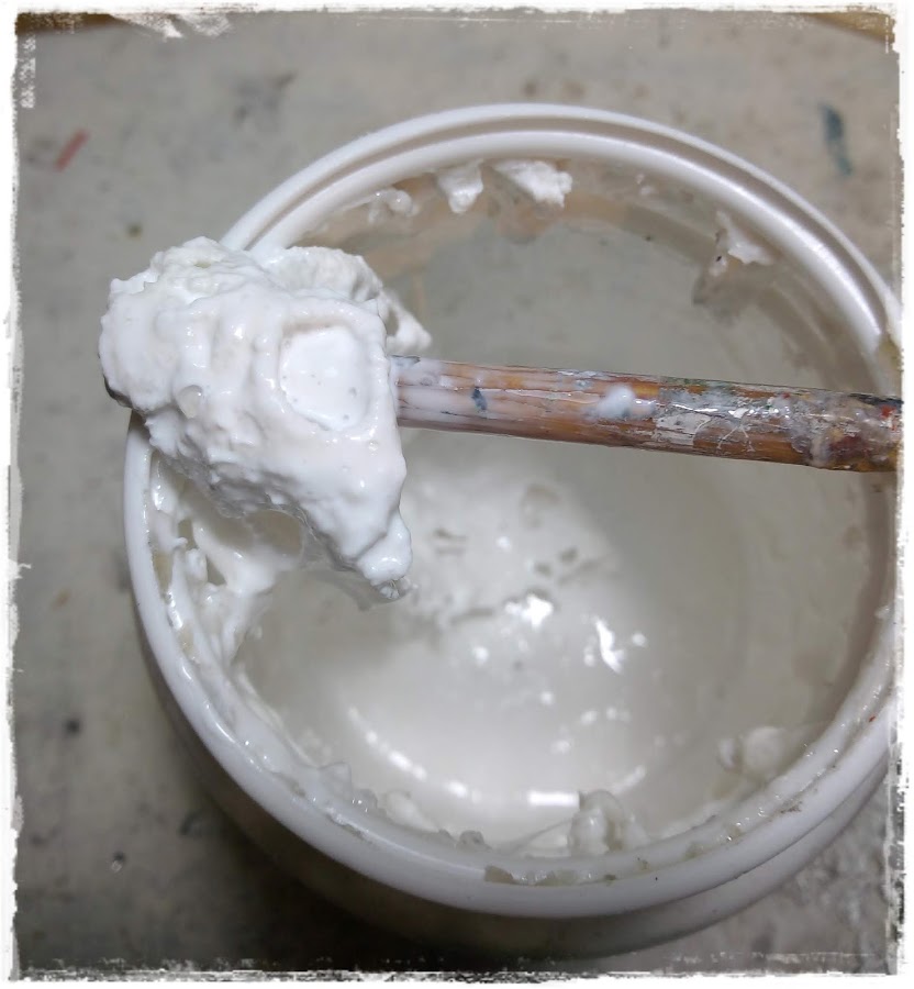 Hice otra prueba que fue introducirla primero en la cola y una vez seca pintarla, pero me gusté más la primera opción por la comodidad y porque queda mucho más impregnada de la pintura, sin ningún recoveco sin pintar.