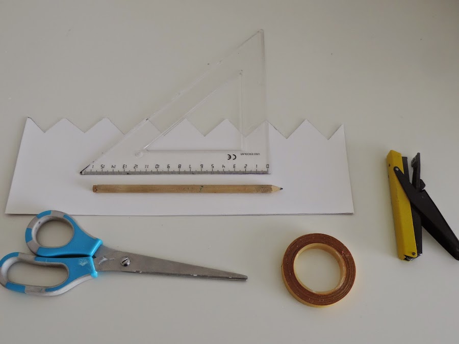 Para empezar haremos un dibujo de la medida que queramos hacer nuestras coronas , en este caso hacen 30 x 10 cm. , recortamos el dibujo que nos servirá de plantilla y reservamos.