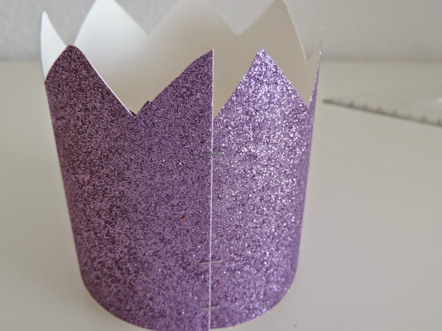 Cogemos nuestras cartulinas y cortamos tiras de 30 x 10 cm. y una vez recortadas en recto ponemos la plantilla encima y dibujamos los picos , recortamos y en uno de los lados ponemos una tira de celo de doble cara , pegamos las dos partes hasta hacer un circulo que las una y para asegurarnos ponemos tres grapitas en el cierre de la corona , ponemos el aplique o pegatina delante hacemos a los lados 2 agujeritos para pasar la gomita y...listo!!! ya tenemos nuestra corona para la princesa de la casa!!! En este caso son para una fiesta asi pues he tenido que hacer varias....
