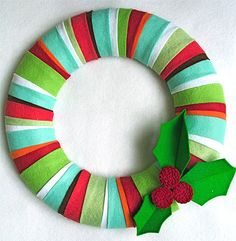 Las pinzas y el washi tape también nos pueden dar un resultado muy lucido. Para la base sólo hace falta una percha de alambre o un trozo de cartón cortado en forma de círculo. Las pinzas pueden decorarse con washi tape de diferentes tonalidades combinados entre sí, o con papeles decorados, papel de regalo... o podemos pintarlas previamente en tonos rojos y verdes. ¿Te atreves con otras combinaciones menos tradicionales?