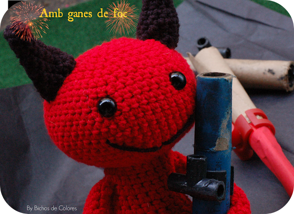 Hola! Ahora que empieza la temporada de Correfocs, es un buen momento para enseñaros a un "Dimoni Pelut", y como mi niña es "Dimoni", que mejor momento no?