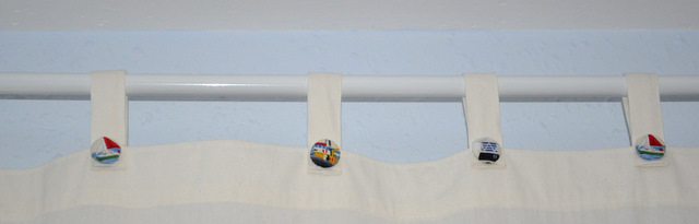 Yo contribuí un poco con las cortinas.Sara,las quería lisas en beig,pero despues de hechas se veían muy sosas y más para la habitación de un niño.