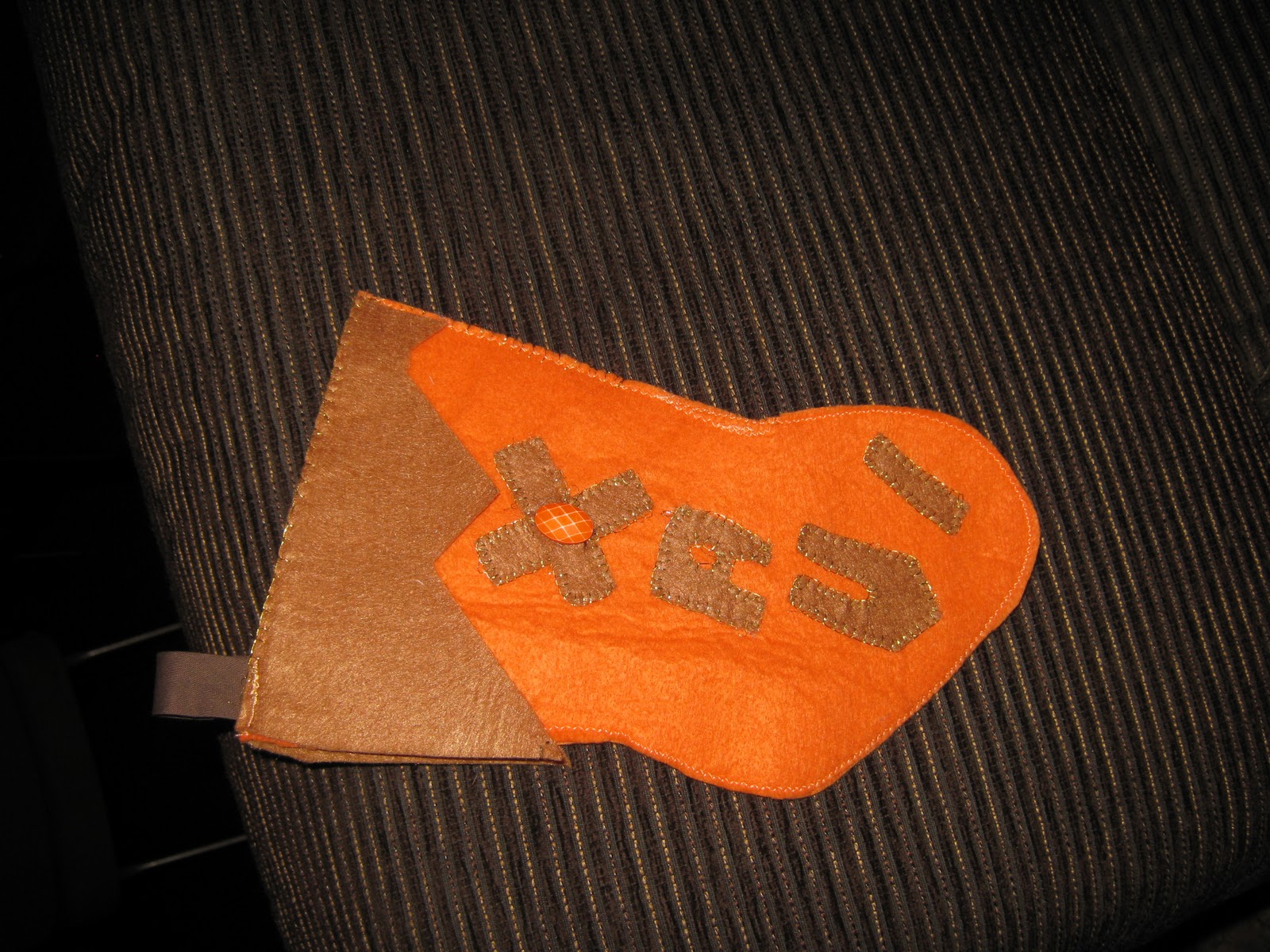 Una cartera de trapillo , a colores , en el cierre una perlita