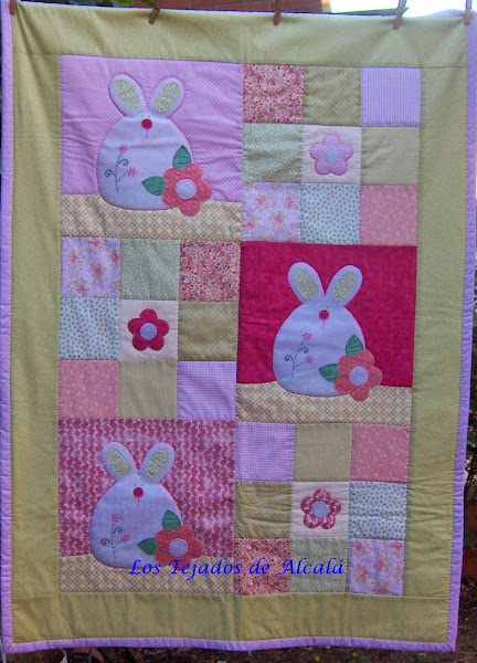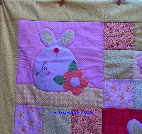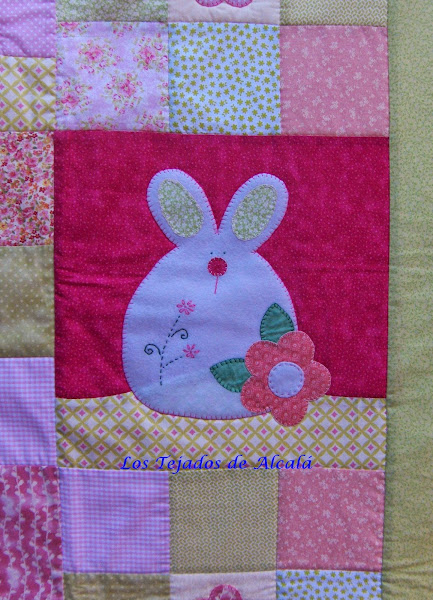 Mi último trabajo ha sido un camino de mesa con un pequeño tapete haciendo juego. La base son hexágonos en tonos azules y sobre éstos, centrados, otros hexágonos más pequeños en blanco. El acolch ...