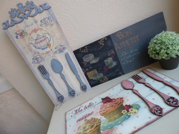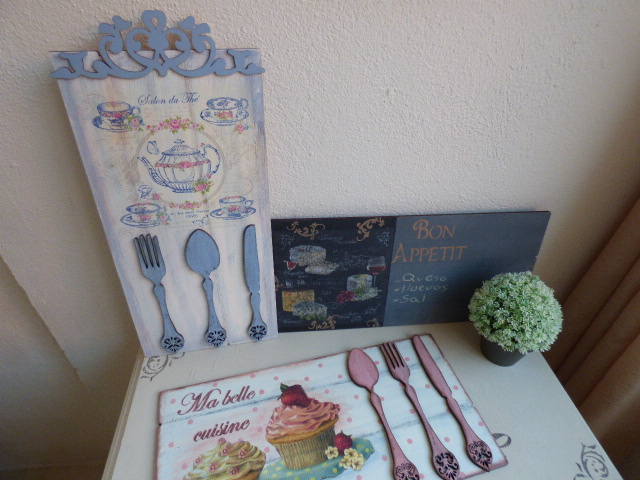 Hoy vengo con unos cuadritos y una pizarra, las tres cosas de tema de cocina.