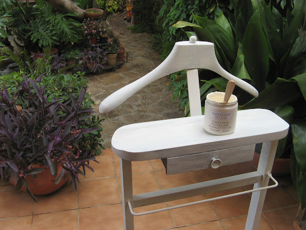 El percherito son 2 retales de madera...el que he pintado negro es la tapa de una caja de vino y el otro un retal de DM que sobró de hacer algun otro perchero. El de color claro decapado a fondo....