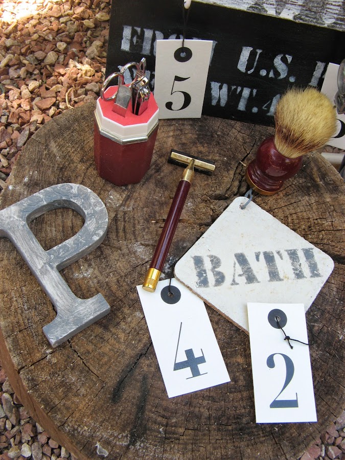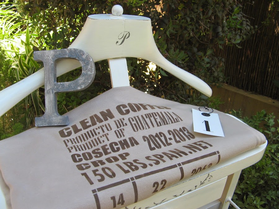 He hecho estarcido en relieve en la letrita de madera, en la barriga que tiene la P.....con una plantilla floral....luego pintura gris muy aguada....