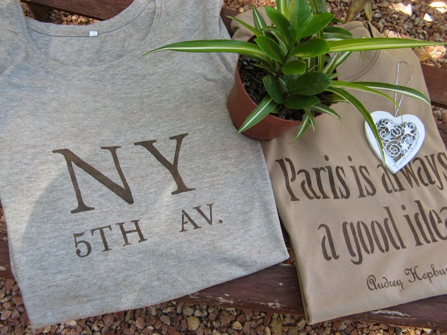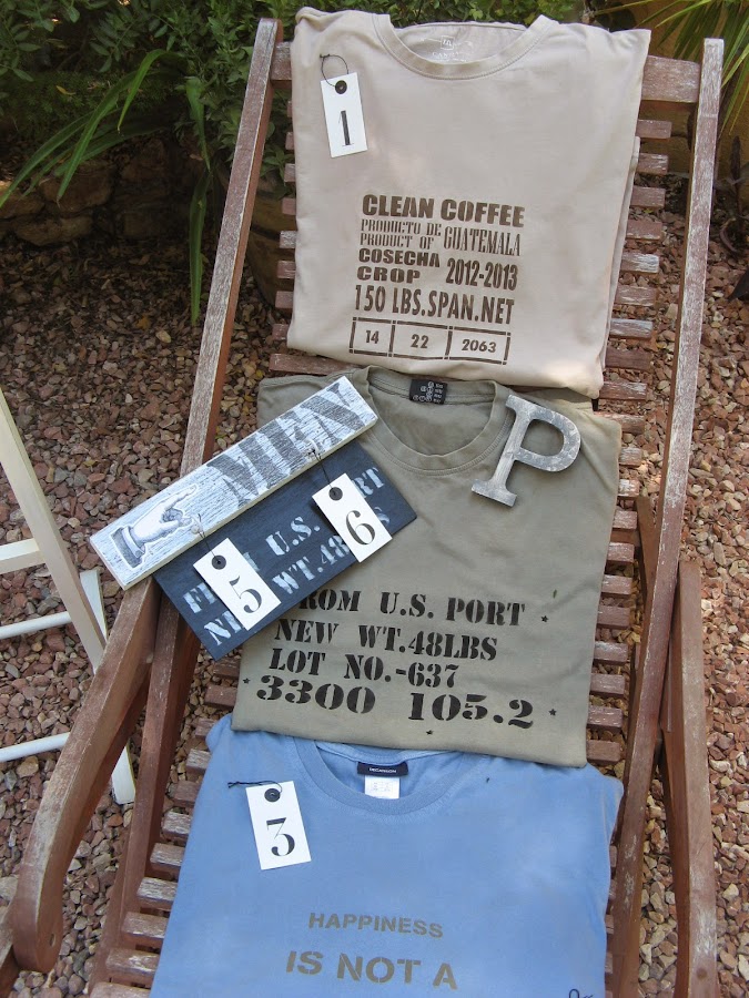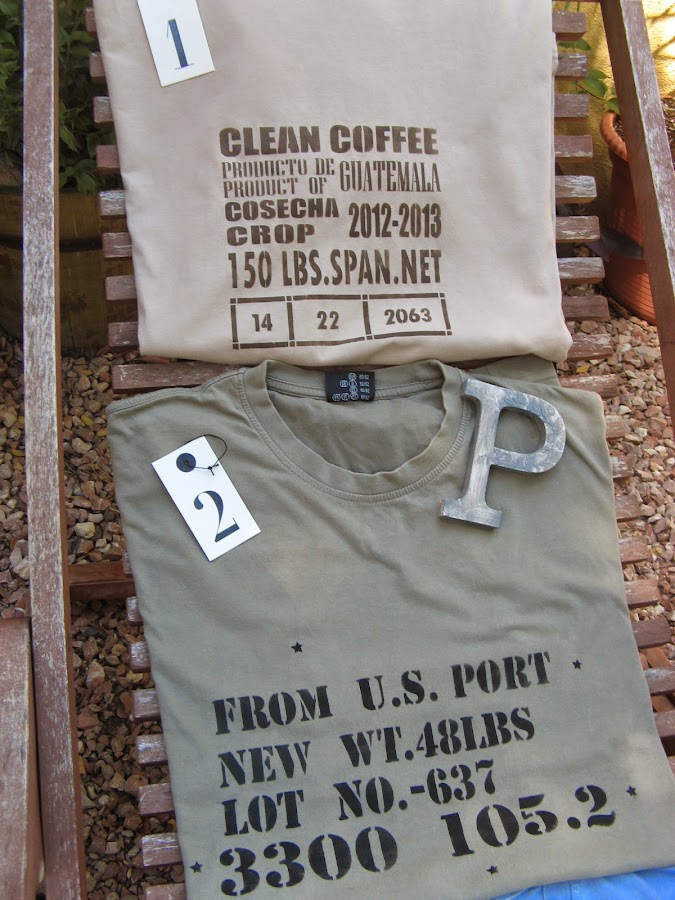 Las camisetas no son nuevas....recien cogidas del tendedero se me ocurrió pintarlas asi que ni las planché. Después de los estarcidos se tiene que planchar de todas formas, por el revés y sin vapor, para que la pintura se fije y resista los lavados, así que con un planchazo final tenían de sobra jaja (¿se nota que odio planchar??)