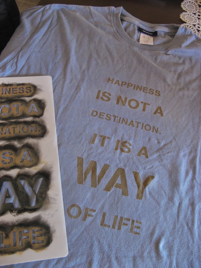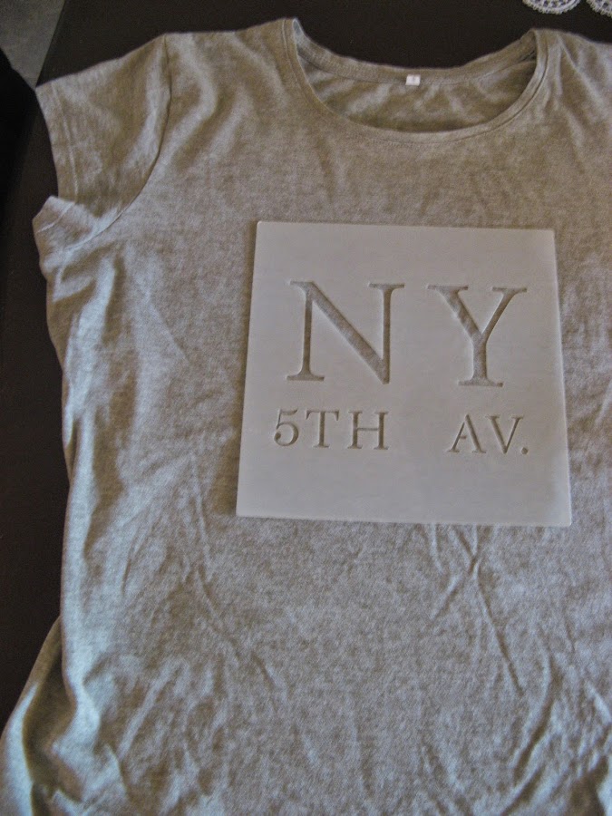 Al ir a estarcir en camisetas hay que tener muy en cuenta poner entre las 2 telas algún plástico o algo que impida que no traspase la pintura....yo uso los plásticos rigidos que llevan las carpetas como separadores.