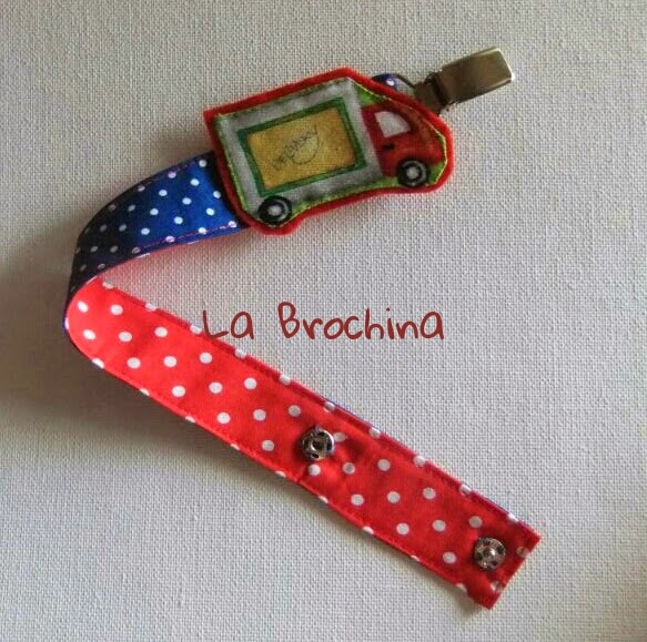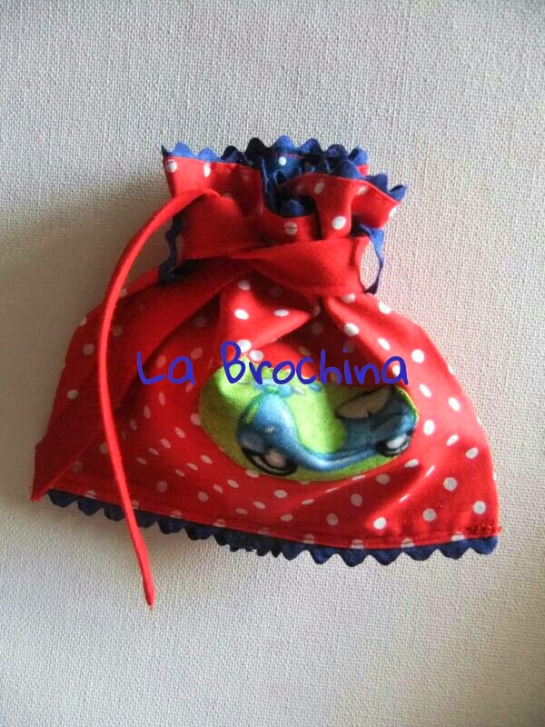 Bolsita adornada con una moto, para llevar algo pequeño como un chupete de repuesto, mordedor.......etc