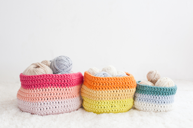 One of my favorite projects are crochet baskets: they are pretty, practical and they brighten up any corner of the house.