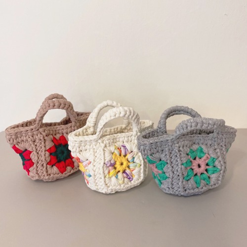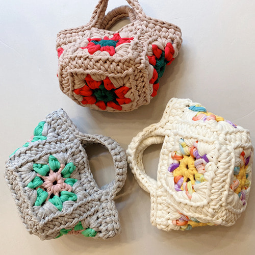 Se trata de unos bolsitos hechos con "grannies" por Monzy que no pueden ser más ideales.