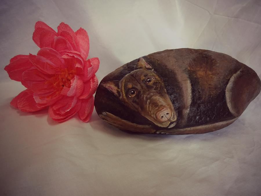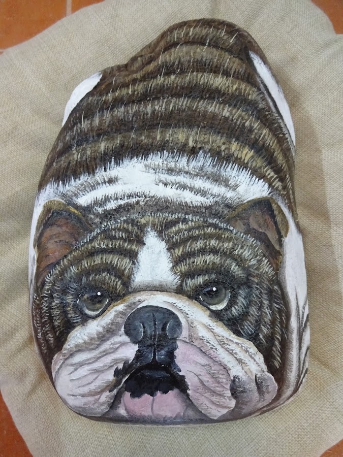 Yo pinto piedras, porque me relaja, porque me gusta pintar cada vez una cosa diferente, la repetición es muy monótona, yo sería incapaz de trabajar en una fábrica, haciendo día sí, y día también lo mismo