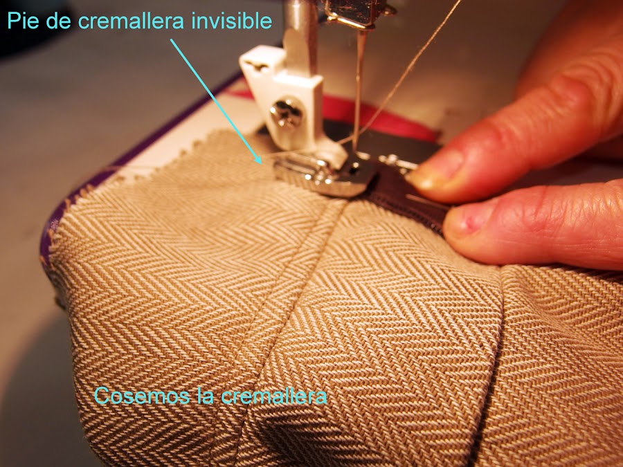 PASO 29: Cosemos la cremallera con el pie para cremallera invible y hacemos lo mismo en el otro lado.