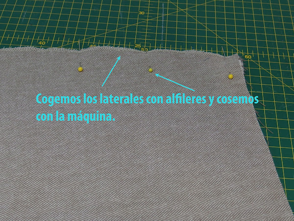 PASO 13: Pasamos a la máquina y cosemos las pinzas de las dos piezas. Rematamos solo en la parte superior de la pinza. En la parte inferior no rematamos, simplemente hacemos un nudito con los hilos.