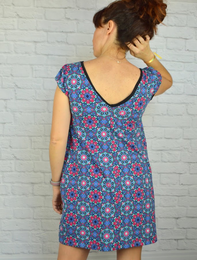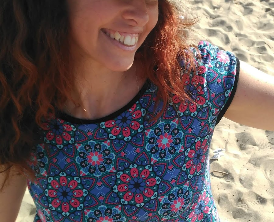 Para adaptarlo, he utilizado la parte superior entallando un poco (saqué una talla menos para que me quedara entallada). A partir del corte que tiene debajo del pecho seguí recto haciendo un poco de forma en la cintura y ampliando en la parte de la falda. Eliminé el corte vaya.