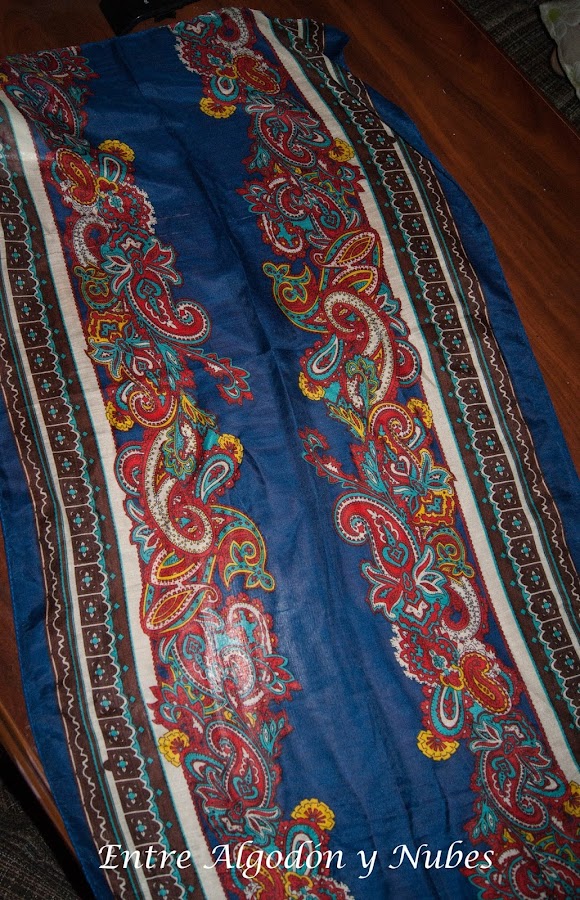 1 Pañuelo (me costó 2€, debemos medirnos el contorno de pecho, cintura y el ancho de caderas para asegurarnos que el pañuelo tiene las medidas necesarias para nuestro cuerpo) el mio tiene 52cm de ancho x 1.60cm de largo.
