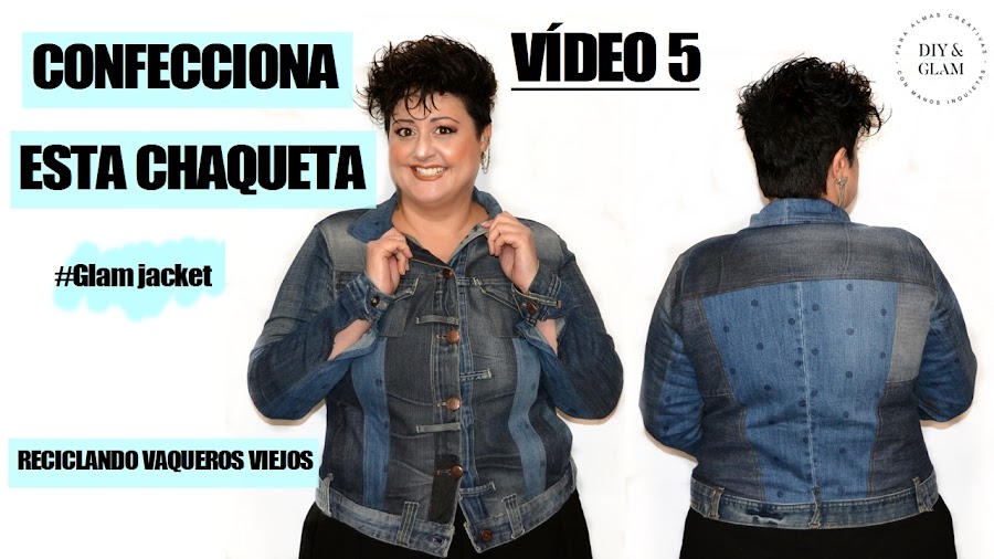 Vamos a coser juntas esta chaqueta vaquera “Glam Jacket“ la he llamado. Está hecha con vaqueros reciclados.