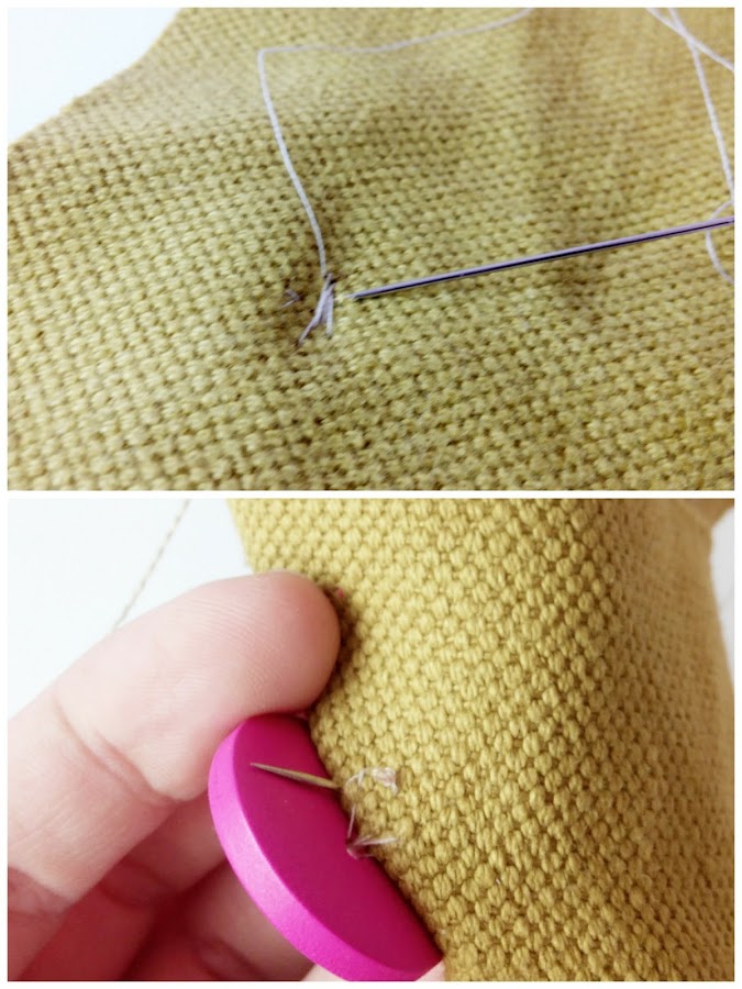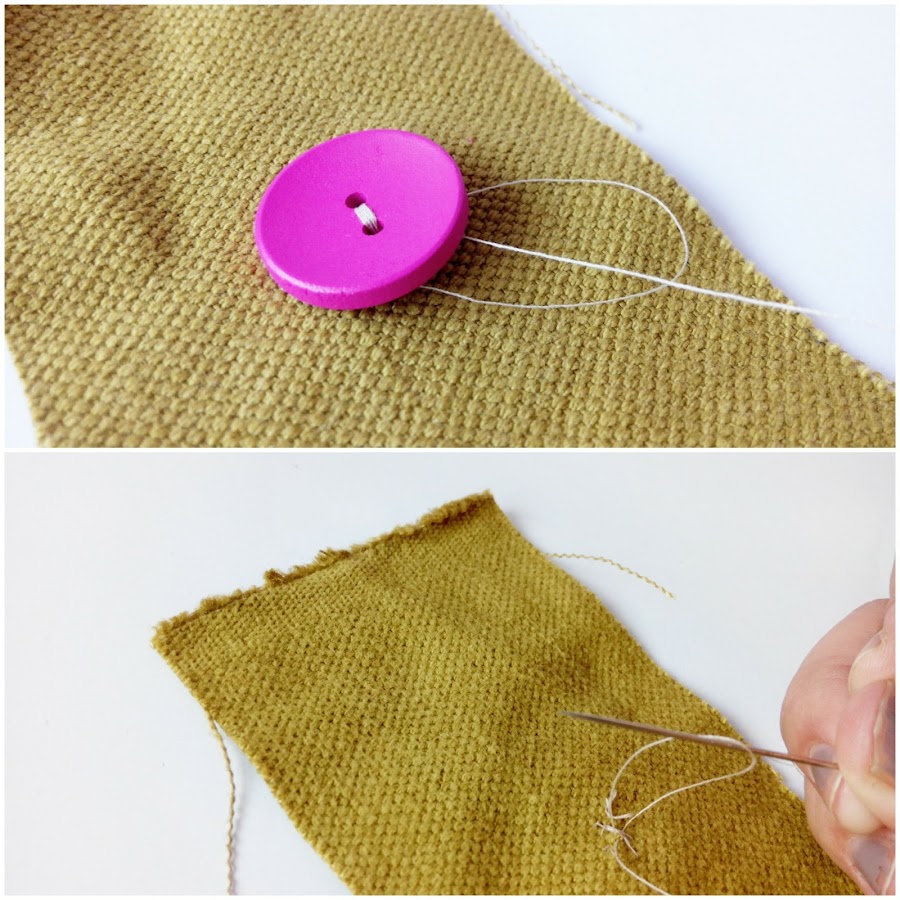 - Enhebra el hilo y da unas puntadas primero donde irá colocado el botón, así quedará más sujeto.