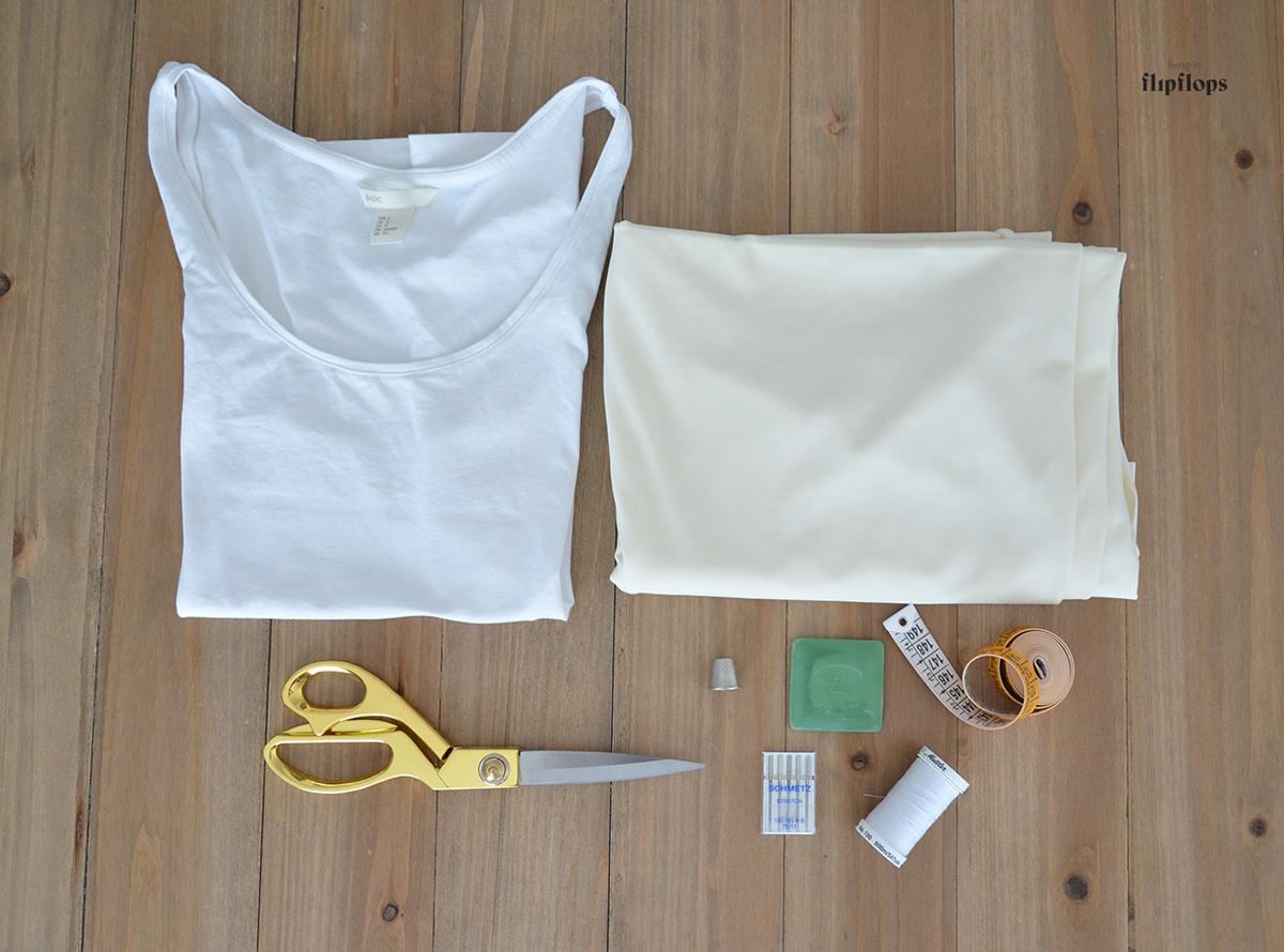 Como ya vimos en el post Cose un top lencero o en Customiza tus básicos muchas veces a partir de prendas que ya tenemos podemos transformarlas o utilizarlas como base de un patrón para hacer otras nuevas. Eso es exactamente lo que vamos hacer en este tutorial. A partir de una camiseta de tirantes básica que estoy segura tienes en tu armario, vamos a hacer un vestido.