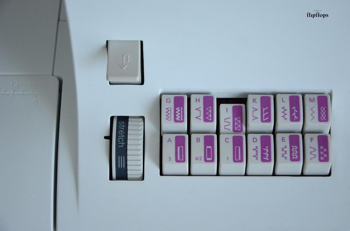 2- Utiliza un punto especial stretch( para telas elásticas) hecha un vistazo a el prospecto de tu máquina de coser, seguro que tienes un punto especial y no te habías dado ni cuenta. Por ejemplo en la mía es el punto I, pero cada máquina es diferente por eso mira la tuya y haz pruebas antes de lanzarte con el vestido.