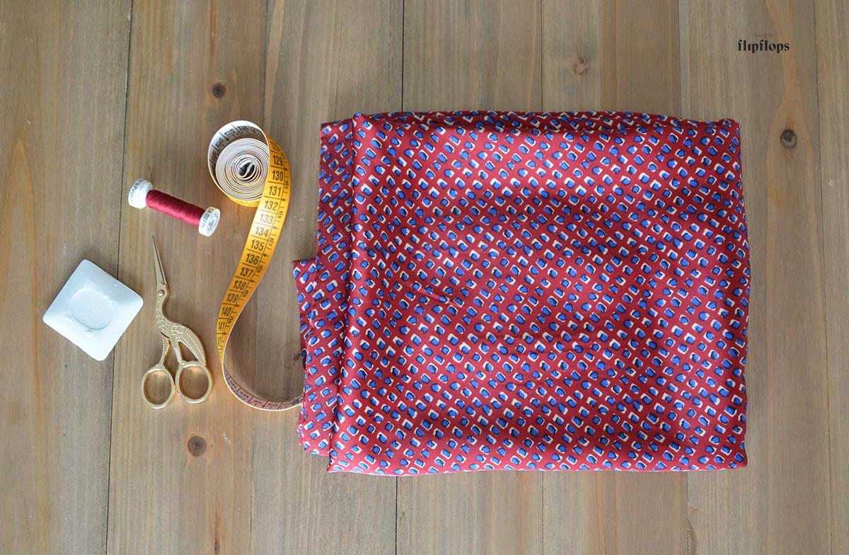 Tela– 1m20 de una tela de 150 de ancho lo mejor es que sea una tela con caída y vuelo como una viscosa o una seda. Yo mido 1m69 y es lo que he utilizado, si eres mucho más bajita quizás necesites menos o si eres mucho más alta necesitarás más ( como el patrón es el mismo para todo el mundo a no ser que seas mucho más alta no toques el largo)