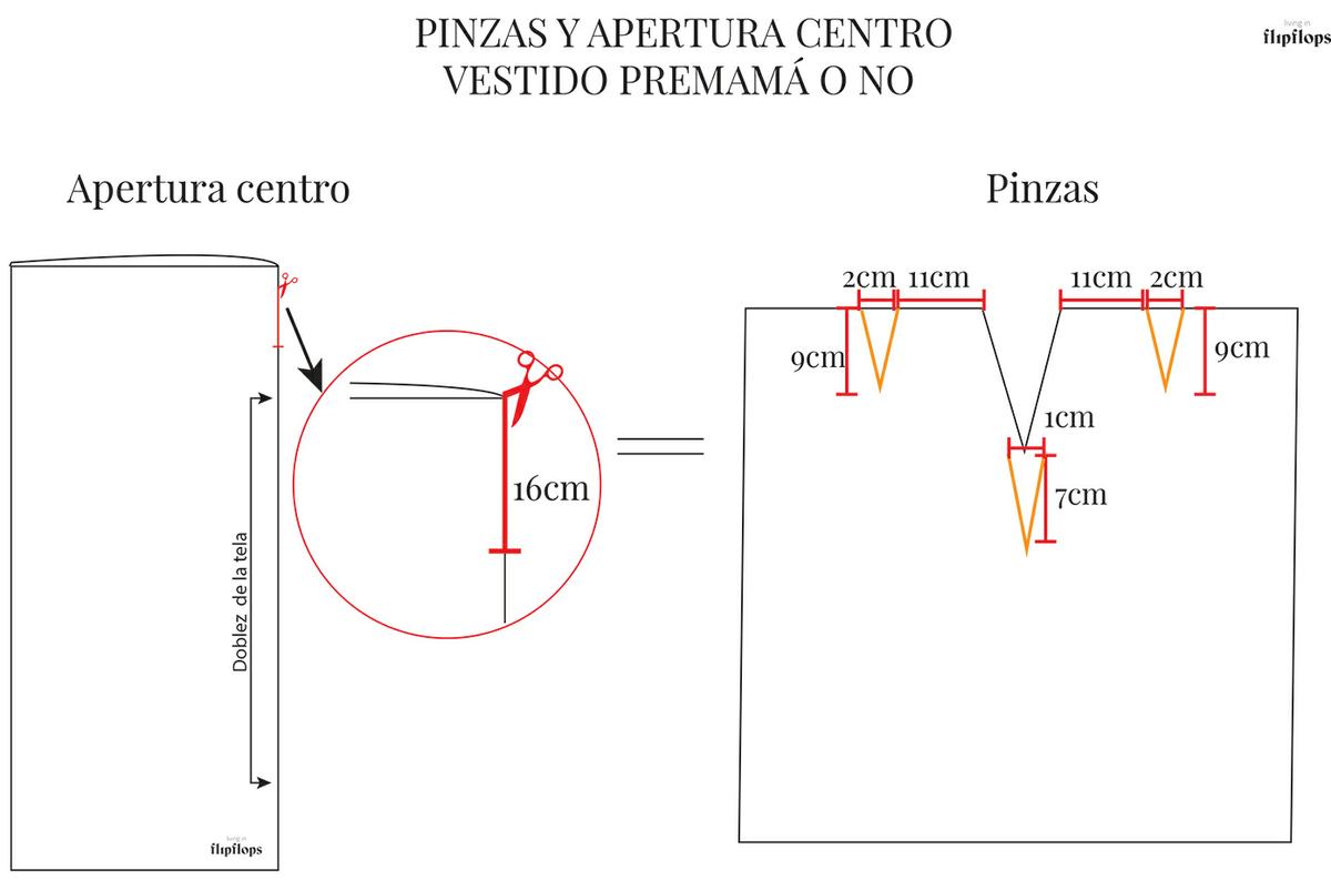 Tienes todo el paso a paso explicado en vídeo, pero he querido dejarte también unos dibujos esquematizados con las medidas exactas para las pinzas etc, para que puedas ir siguiéndolos a medida que vas viendo el vídeo y que así todo sea coser y cantar.Apertura del centro 16 cm