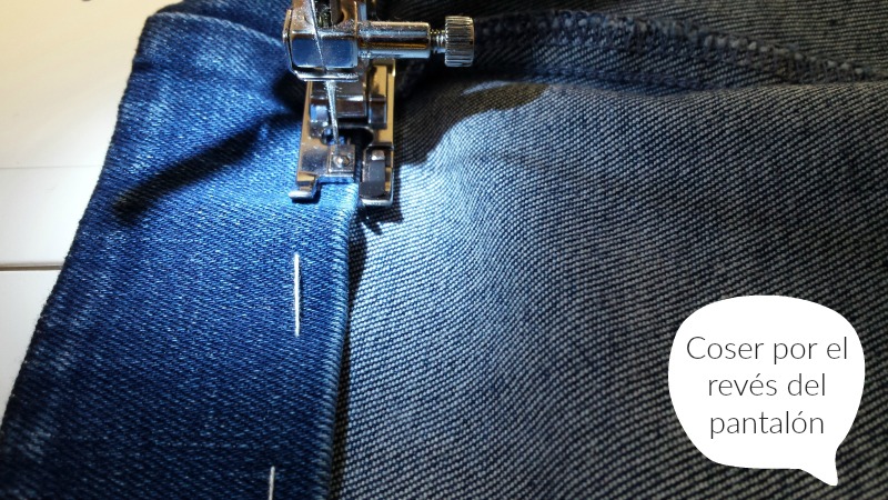En mi caso, como veis, lo que antes era la costura del bajo del pantalón, ahora se convertirá en el borde de mi pantalón (puesto que es la medida del bajo original lo que voy a subir). Esto me facilita mucho el trabajo, porque tengo como referencia las marcas del bajo original.
