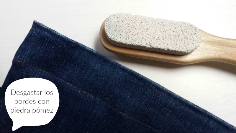 Para poner la guinda al pastel... o mejor dicho, al bajo del pantalón! otro truco del almendruco: pasa una piedra pómez por los bordes y las costuras; obtendrás un efecto desgastado similar al de los vaqueros originales y nadie notará que tú misma has subido el bajo del pantalón.