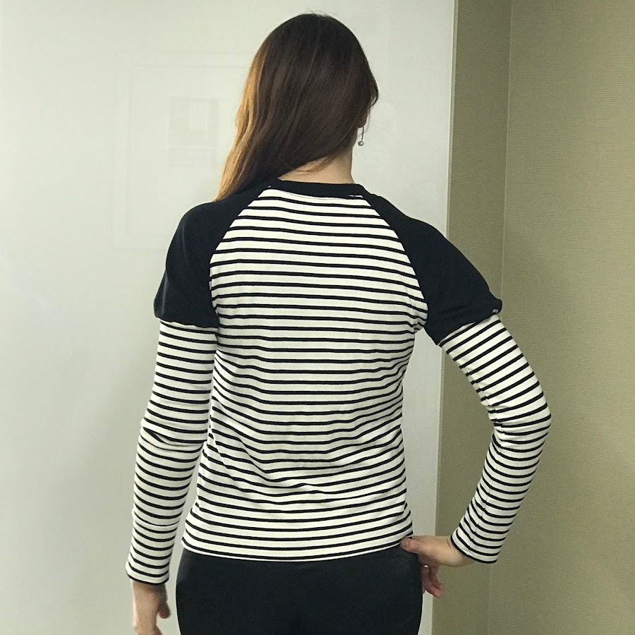 Este es el modelo, opté por él porque la tela de rayas que tenía era un poco escasa y así colocando las mangas cortas de otra tela, he podido sacarla sin problemas...