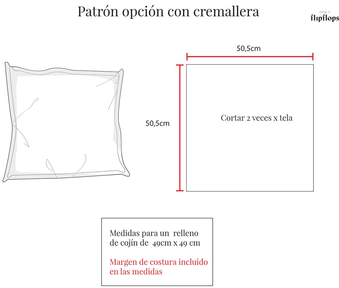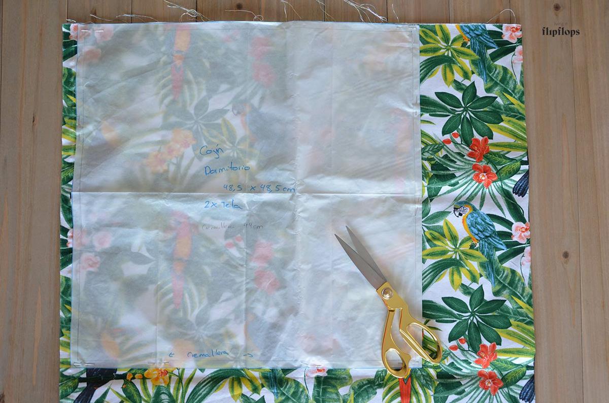 Para hacer las dos fundas de cojín he utilizado 1m de tela de 136cm de ancho.