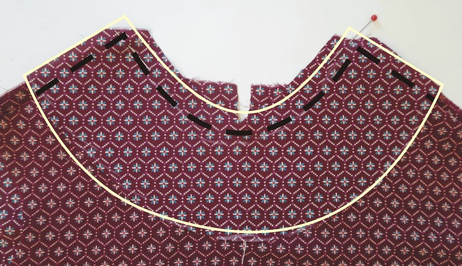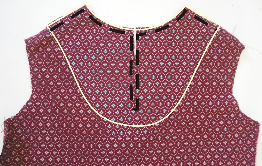 En el ejemplo que vas a ver se trata de un escote a caja con una pequeña abertura en la espalda, se hace para que el escote se ajuste al cuello, una vez abrochado y sea fácil de poner y quitar.