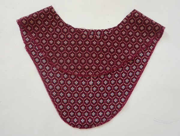 Para hacer la vista tomaremos un retal de tela que nos permita sobrepasar unos centímetros la abertura del escote. Va ha ser el propio cuello el que nos de la pauta para crear la vista.