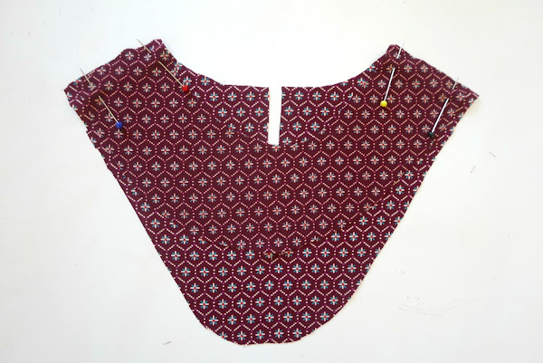Ahora separamos las vistas del cuerpo y las preparamos para coser:Importante: En función del grosor de la tela, podemos entretelar las piezas de la vistas. Si quieres hacerlo, antes de coser los hombros de las vistas, sería el momento: