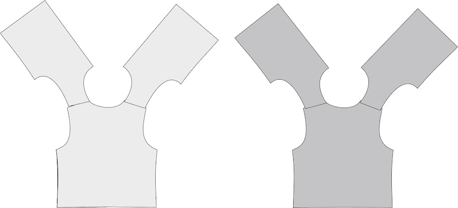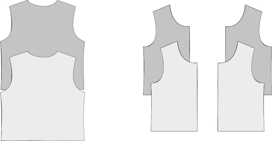 Estas son las piezas del patrón. Como veis son muy sencillas, este tipo de diseño de piezas completas queda muy bien con la técnica del cosido y vuelto.