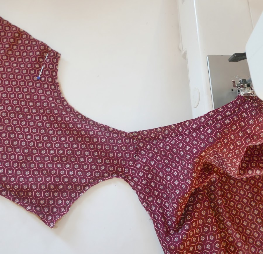 Cosemos las zonas que hemos preparado con alfileres, de momento dejaremos por coser los laterales y el bajo: