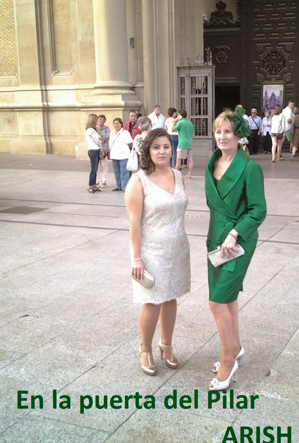 y como complemento llevé un tocado de yute natural en el mismo tono de verde y os pongo un par de fotos con Eva en mi querida Plaza del Pilar