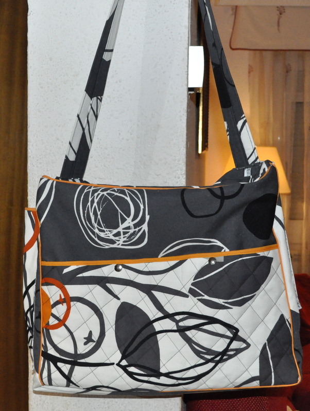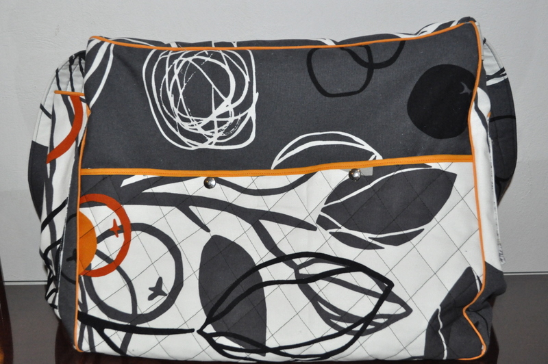 Este es el bolso para el cochecito,el cochecito es negro y naranja y a Tami le gustó el bolso de mi hermana que ademas lleva esos tonos así que me lo pidió de la misma tela.