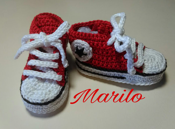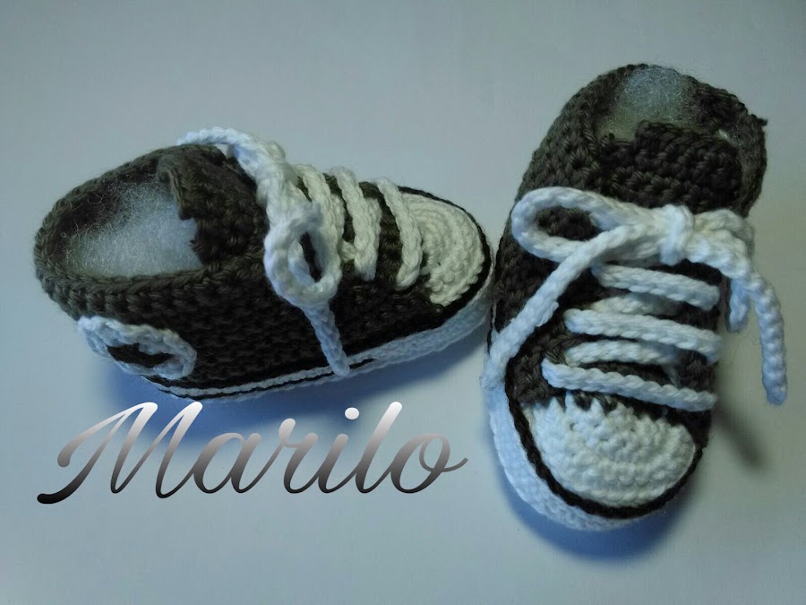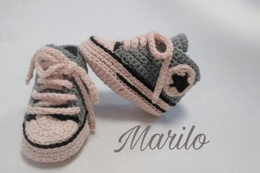 Y ahora os presento unos patucos para dos/ tres meses realizados en ganchillo, y en algodón suavito para bebes, los hace una amiga y son una monada.