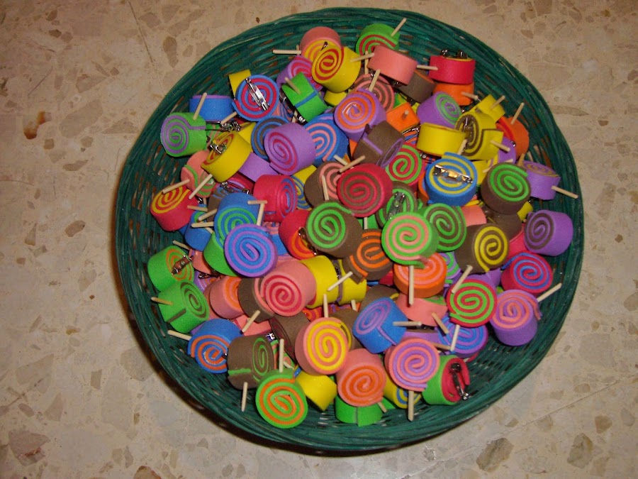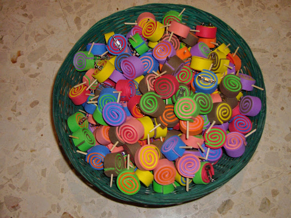 Para hacer honor al kiosco les he hecho unos broches para los peques de piruletas.
