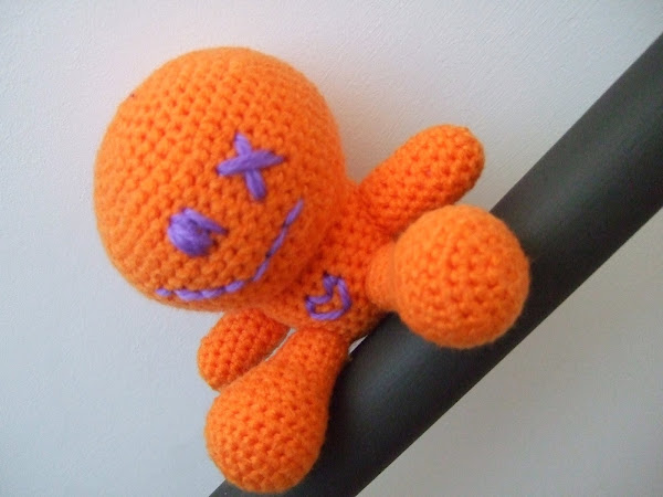 Aquí como tenía lana naranja y me encantan hacer muñecos, pues le hice un muñequito.