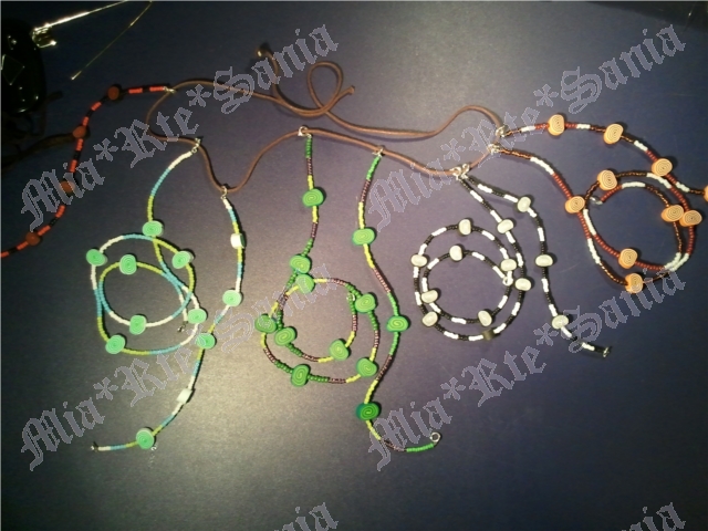 SEGUIMOS CON UNOS COLLARES, PULSERAS,TOBILLERAS,PENDIENTES CORTOS Y LARGOS, a juego si así lo preferís...