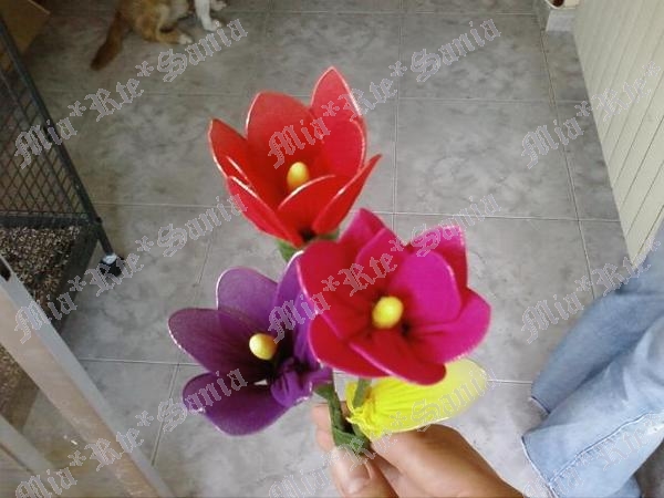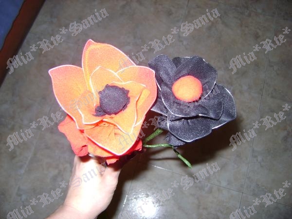 FLORES HECHAS CON MEDIA Y ALAMBRE PAREJA DE FLORES CON MEDIA